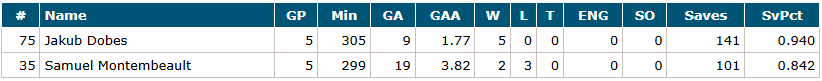 Bonne nouvelle pour la plupart des fans du Canadien : À l’approche du match de ce soir, Martin St-Louis a décidé de revenir avec Dobes devant son filet. On ne fera pas comme s’il s’agissait d’une décision particulièrement difficile – sans vouloir dénigrer Montembeault, qui a toujours fait de son mieux -, mais il fallait néanmoins la prendre :